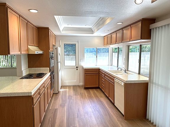 Welcome home! 4 bedrooms and 2 baths spread out over 2000 Sq Ft of Living space. This home is spacious with an open and inviting floor plan. The interior has been freshly painted. Recent upgrades include luxury vinyl plank flooring throughout and new recessed lighting. The galley kitchen is large with ample cabinet and counter space. Separate dining area with wet bar. Nice sized bedrooms with with plenty of closet space. The master bath boasts a new shower surround including a new sleek frameless shower door. Large wrap around backyard with gardening included. 2 car garage. Close to shopping centers, entertainment and schools. one year lease one month deposit. Qualifying income and credit a must. This home will not last long.