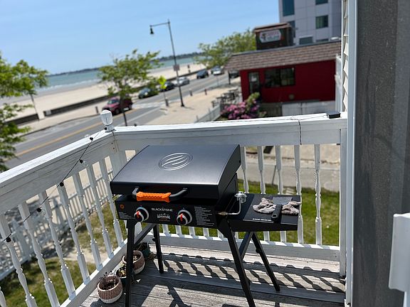 Oceanfront renovated 2 bedroom just steps away from the sand on Revere Beach. New kitchen with quartz countertops and breakfast nook, large deck facing the water, hardwood floors, updated bath, central a/c and off street parking. Washer/ dryer in unit. Within walking distance to Blue Line and multiple restaurants. 1 year lease, 1st and last months rent due at signing. Tenant pays utilities.