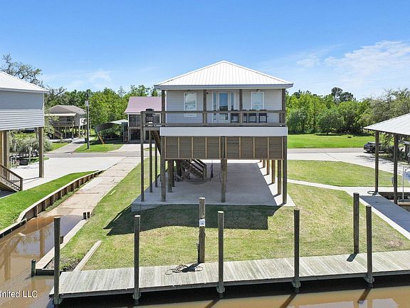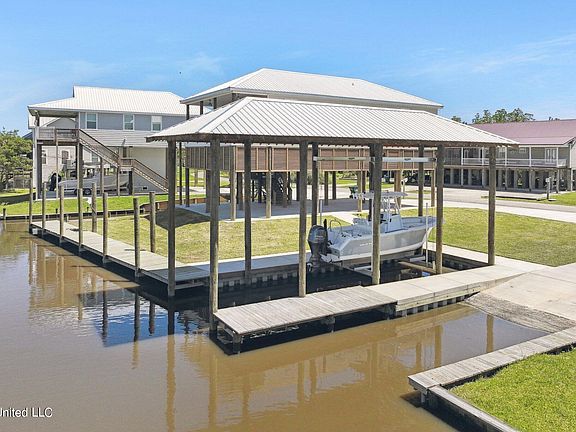 To complete the property, there is a 14,000 lb boat lift, boat ramp, and a 40' long covered boat slip. Just a short boat ride away to the Jordan River or take your golf cart to downtown Bay St. Louis.