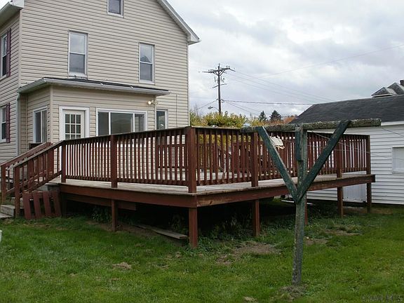 3 Bedroom home situated on 3 boro lots, close proximity to hospital and schools. Main floor has LR, separate DR, Kitchen and Laundry. Upstairs you will find the 3 bedrooms and full bath, a finished heated attic(captive), and additional storage space if needed. Outside includes a single car detached garage and an over sized deck for outdoor entertaining. High efficient gas furnace w/ central A/C, updated wiring throughout home.