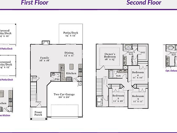 McKee Homes presents the Sullivan 2020 floorplan featuring an open-living layout with a foyer that opens to a spacious living room, dining area and gourmet kitchen with island on the first floor. The second floor features a private owner's suite with substantial walk-in closet, shower with seat, linen closet as well as dual-sink vanity. Three additional bedrooms, full bath, and laundry room finish out the second floor. Options include a deluxe kitchen, a garden tub with separate shower in the owner's bath, a covered rear porch which can also be screened, and sideload garage, depending on lot size and orientation. The Sullivan 2020 Classic elevation features a blend of brick and siding with simple roof lines for a classic, elegant look.