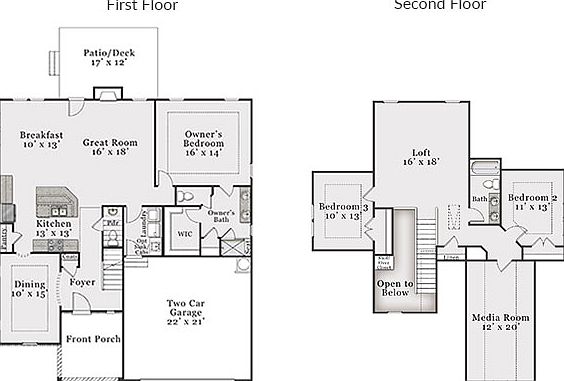 McKee Homes presents the Biltmore 2020 European with a charming front entrance opening to a soaring two-story foyer, elegant formal dining room and inviting great room. The thoughtfully designed kitchen layout includes a large chef's island with plenty of room for seating adjacent to the sunny breakfast area. The owner's suite is conveniently located on the first level with huge walk-in closet, dual-sink vanity, shower with seat, and linen closet. The laundry room, which serves as a mudroom off the garage, and the powder room finish off the first-floor interior space. Moving to the second floor, you will find two additional bedrooms and ample versatile flex space from the spacious loft to the substantial media room. These large open rooms have many uses such as office, family room, playroom, movie room, or whatever fits your needs. The Biltmore 2020 European elevation features custom exterior details that give these homes a refined upscale look. The blend of architectural stone, siding, and specially styled arches and roof lines give our European Collection homes a unique and appealing design. The Biltmore 2020 is teeming with options to include a sunroom with plenty of light off the great room and a well-lit sitting room and deluxe owner's bath in the owner's suite. The formal dining room with a French door option that turns it into a study just off the foyer and the deluxe kitchen layout finish out the first-floor options. If you need an additional bedroom, a