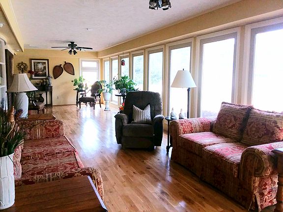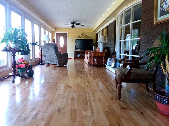 Welcome home to this spacious brick home with a country setting, looking for it's new family! Upon entering this well built home, you will quickly notice the quality of craftmanship and materials. You will be greeted by sunshine from the floor to ceiling windows in the sunroom. The beautiful, hardwood floors are throughout all 3 living areas in this home and the hallway leading to the 3 bedrooms and huge bath. As you continue from the sunroom to the den, you will notice all of the intricate, dental moulding and trim on the ceilings, baseboards as well as the large built-in unit that can be used as a library, or display of photos and such, along with a chandelier. You will then see the 2nd living area, with a large window that draws the sunshine in from the sunroom. This room would also make a perfect office, music room or gameroom for your family. Leaving this living room, the hallway leads to the master bedroom at the end of the hall with the master en-suite and walk-in closet. The other 2 bedrooms are also along this hall as well as the huge bathroom with double sinks and a lot of storage. Walking toward the kitchen, you will find the most cozy room in the house, with a beautiful fireplace that also has gas logs for emergency use, or just a relaxing evening. This living space is visible from the kitchen and makes a great hangout spot for family and friends while waiting on meals. There is a door leading outside from this room that takes you to the covered deck, patio and the landscaped walkway, with a beautiful pergola, and a covered barbecue area with built in benches that doubles as a large gazebo (12'X20'). Walking back in from the gazebo area, you will notice the HUGE kitchen. This kitchen features a breakfast nook, custom cabinets, built in desk, an unbelievable amount of storage, large island, pantry, double oven and dishwasher. The formal dining room is just off of the kitchen and can accommodate a table for any large family. From the kitchen, you will enter the laundry room that also has a 1/2 bath, making it convenient to the kitchen as well. You will see the next door leading to the mud room that you will enter from the covered parking area. Also, leading off the mud room, is a giant storage room (15'X20'). Outside, you will find a level, landscaped yard with a detached storage building with sheds on each side. This beautiful home, country setting, friendly neighbors and great location make this the perfect place to call home. Welcome home!