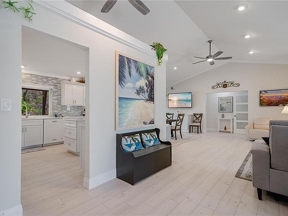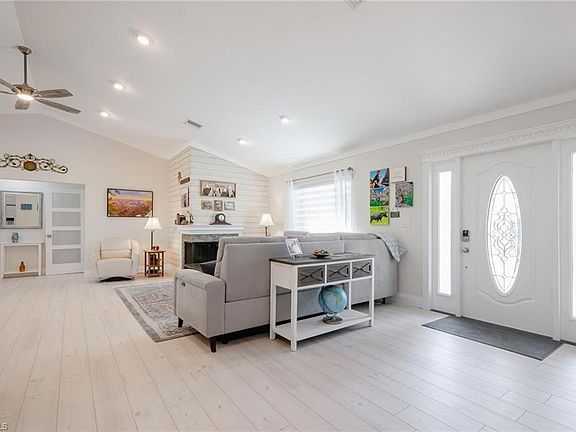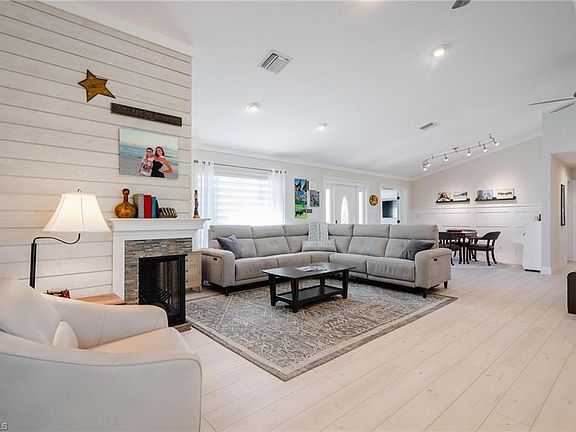Gulf access! Enjoy boating through the back waters to our beautiful Gulf beaches all while enjoying the amazing wildlife. Drop a line and catch a Snook right in your backyard. Beautifully remodeled 4BR, 2 BA home with custom pool & waterfall. A private tropical oasis located in the much sought after neighborhood of Palm River Estates. Spacious with an abundance of natural light. The open floor plan flows perfectly for entertaining with pocketing sliding doors seamlessly blending the inside & out. Wood burning fireplace. Well designed modern kitchen with quartz counters, soft close doors, pull out pantry & newer appliances. Split floorplan. COREtec luxury vinyl plank flooring throughout. New roof, water heater & high efficiency dual stage AC. Energy efficient windows & custom blinds, Crown Molding, Upgraded Interior doors & Moldings throughout. Spacious primary bedroom, large walk-in closet, luxurious bath. Guest/pool bath with double vanity & walk-in shower. Hurricane shutters. Close to shopping, parks, restaurants & hospital. Just 3 miles to beautiful Naples beaches! "A" rated schools & state of the art Aubrey Rogers HS!