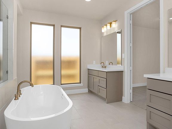 READY FOR MOVE IN!! Home office with French doors and formal dining room along one side of two-story entry. Two-story family room with wall of windows opens to kitchen and morning area. Kitchen features walk-in pantry, Butler's pantry and generous island with built-in seating space. First-floor primary suite. Dual vanities, freestanding tub, separate glass-enclosed shower and two walk-in closets in primary bath. A second bedroom is downstairs. Media room, game room and three secondary bedrooms are upstairs. Extended covered backyard patio. Mud room off three-car garage.