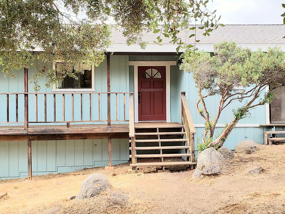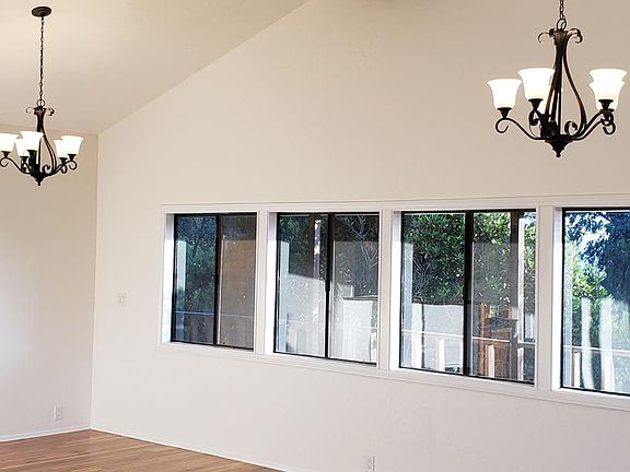 Beautiful Private West Alpine 1 acre Home with Views High Speed Cox gigablast internet up to 940 Mbps available for remote work at Home. Only 2 miles to 8 freeway dunbar harbison canyon on ramp and a short walk to one of many great Alpine schools. Vaulted beamed ceiling and many windows highlight the El Capitan mountain views. 2 bedrooms w/ walk in closets and 1 remodeled bathroom. About 1 acre of usable private land with oak and olive trees. On city water. New Appliances including dishwasher, washer, dryer, refrigerator and oven range all included. Remodeled laundry room with large window and double doors. 2 hall closets for extra storage. Gorgeous refinished hardwood floors throughout the house along with fresh paint, new fans in bedrooms and new light fixtures inside and outside. New minisplit AC and heat in living area and compact in wall heaters in each room. The wood burning stove in the living room is perfect for a cozy evening. Wrap around covered deck with plenty of relaxation space. non-smoking property and pets negotiable. House is currently unoccupied and has not been lived in recently but due to covid applicants will have to discuss rental by phone prior to viewing the home. Thank you Tenant pays all utilities and trash. Non-smoking property. Additional deposit for pets. Horses, cattle, livestock and outdoor animals welcome.