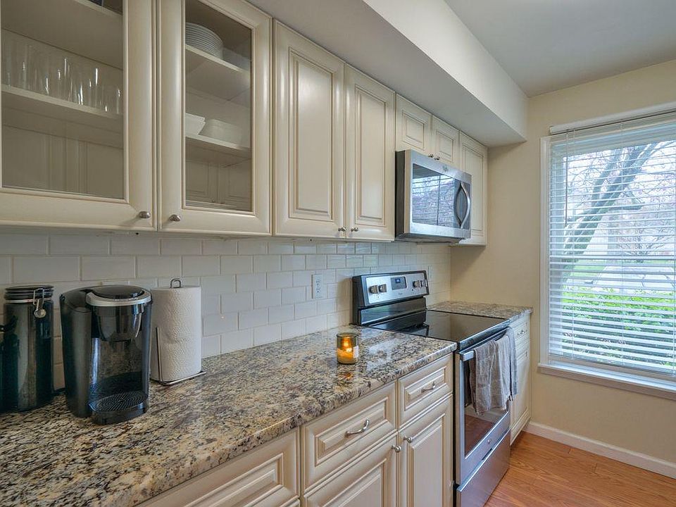 Wow!! Totally renovated townhouse adjacent to the srylish new One Bellevue Place. New kitchen w/granite, tile backsplash, stainless appliances, new cabinets. New baths with granite and marble tile and new cabinets. New laminate flooring throughout, Great backyard backs to trees and common area. Don't miss this one!