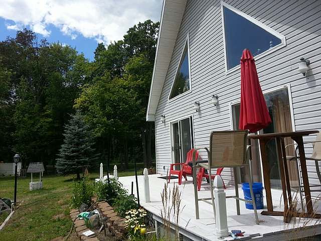 The best of two worlds ACREAGE AND WIXOM LAKE WATERFRONT. Chalet style home with attached garage has 12 acres, nicely wooded parcel that offers a variety of wildlife. 200 ft of water frontage offers a waterway into main Wixom lake. Open floor plan with cathedral ceiling and plenty of large windows provides natural lighting and greats views of the canal. 30 x 40 pole barn for storage. 8x8 shed. Privacy is a plus - no close neighbors here. Private drive just off paved road.