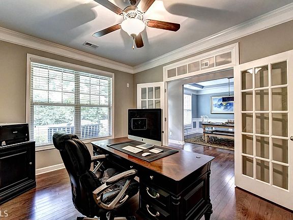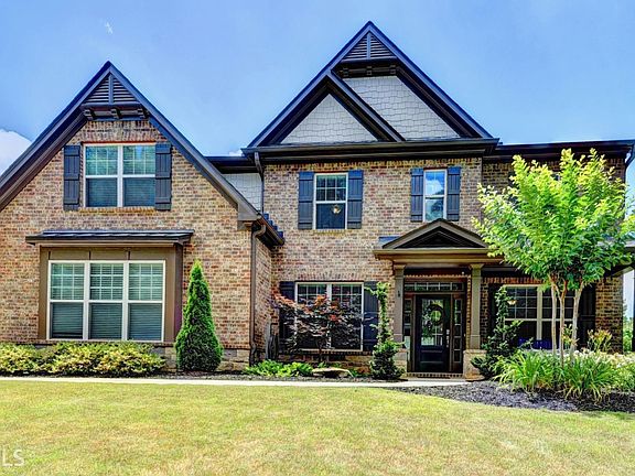 Move-in ready 6BR/4Ba on huge lot w/ 3 sides brick & 3 car garage. New carpet, newly updated Kit/Ba cabinets & interior paint through-out. Custom glazed kit island & built-ins in FR & BF w/ coffee bar. Hardwoods, updated kitchen w/SS appliances & granite counters, formal DR, BF, office, bedroom & full bath, all on main! Designer lighting & elegant details such as shiplap & custom millwork compliment this home. .53 acre private lot borders 2 tree saves & paved community trails. Just minutes to Vickery's shopping/dining, Midway's Rec fields, The Collection & Sawnee Mtn.