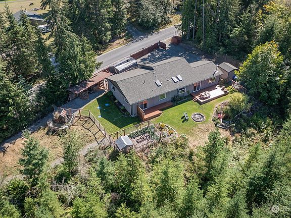 Blue Mountain like never before! This custom-built home is surrounded by 1000s of acres of DNR forest, & miles of trails offering ultimate privacy & opportunity. The primary suite opens to a south-facing deck where you can enjoy a hot or cold drink & breathtaking sunset views! Experience true staycation living on Blue Mountain with your firepit, stargazing, & more. Huge flex room for home enterprise, a home gym, Costco room or prepper headquarters! The spa like ensuite features a jetted soaking tub with stunning mountain views. Large windows & an open concept highlight the natural beauty. Outside, enjoy RV hookups, fenced gardens, a dog run, & custom hen house. Just 15 minutes to downtown Port Angeles or Sequim. Let the good life start now