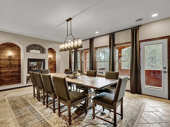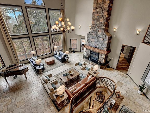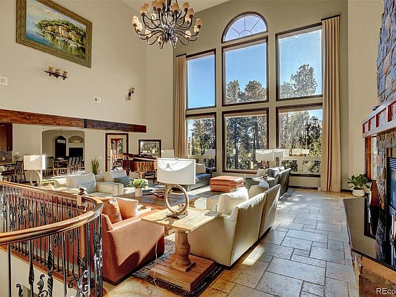 Luxury living in the coveted community of High Forest Ranch. Over 9,000 square feet of living space with plenty of privacy on 3+ acre lot. Experience the awe of 30’ ceilings in the floor to ceiling window-covered great room with beautiful stone covered fireplace. Perfect for entertaining, the living space opens to the gourmet kitchen, a chef’s dream with all Viking appliances, including two ovens and two DWs. Dining Room with great views has custom built-ins and a gas fireplace. Intelligent design of the main floor allows for multi-generational living. One wing has a brightly lit junior master with a cozy fireplace and attached large 4-pc bath and walk-in closet. This wing has an additional bed, bath and laundry. The second wing features an expansive master suite with two sided fireplace, sitting room, private deck with hot-tub and gorgeous 5-pc bath. Two additional bedrooms with ensuite baths and private patio plus laundry on this wing. Upstairs offers office space, separate library/loft, craft room and powder bath. All of your entertaining needs will be satisfied on the lower level walk out, a huge game room with wet bar is perfect for billiards, theater room with new screen & projector, heated indoor pool with electric retractable cover, plus a massive rec space great for fitness or create an additional living suite with separate exterior entrance. Storage abounds throughout with a large wine cellar, shop room and five attached garage spaces. Take full advantage of the Colorado outdoors by enjoying the 1600 sqft stamped concrete patio, multiple covered patios & decks plus an outdoor kitchenette with grill and refrigerator. Recent upgrades: new premium ceramic floor tile & carpet, finished basement rec space, composite deck, elec upgrades, built-in outdoor heaters, new concrete patio and parking spaces, smart blinds in great room, UDM Pro mesh high speed internet wifi, new turf, new HVAC heat pump system, hail resistant roof and trimmed with custom gutters.