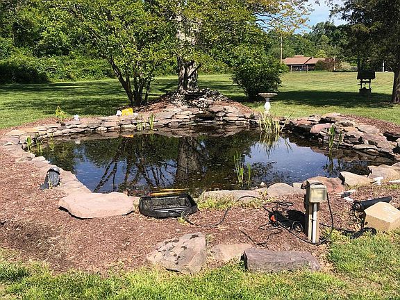 Spacious 1.5 + Acre Pomonkey home has a custom Koi pond and relaxing waterfall for peaceful enjoyment and relaxation. One main level and a partial finished basement with an outside entrance to the rear yard and 2 car detached garage, Plenty of yard for your garden and family gatherings. The large dining and family room has a propane fueled fireplace connecting to the rear sun room with extra storage or large bedroom with a walk in closet. New bathroom and new fixtures have been added along with new flooring and paint . Cozy den with fireplace and separate office for your work from home days.