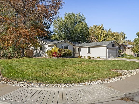Located in the heart of Donner Springs, this tastefully updated home blends classic character with modern comfort. Step inside to find new flooring throughout, fresh interior paint, and updated lighting that give every room a bright, welcoming feel. The kitchen has been modestly refreshed with painted cabinets, new hardware, and a tankless water heater for energy-efficient living. Stay comfortable year-round with central air in the warmer months and forced-air heating and a pellet stove for the colder season that adds both warmth and charm. The two-car garage features epoxy-coated floors and a new door lifter, offering a clean, functional workspace or extra storage. Outside, enjoy the new fencing on the south side, a fully working irrigation system, and a low-maintenance yard ready for relaxing or entertaining. This home offers the perfect balance of updates and value in one of Reno's most approachable neighborhoods. Move-in ready, thoughtfully cared for, and ideal for first-time buyers or anyone looking for a solid home in an established neighborhood rich with mature trees and lasting appeal.