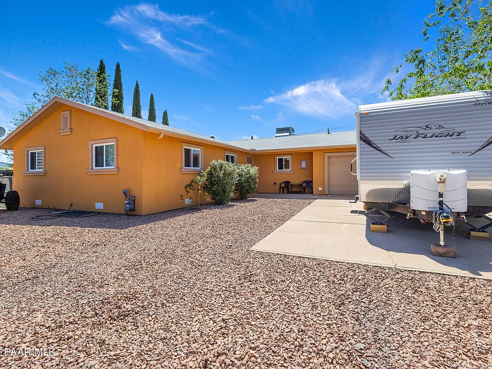 MOVE IN READY... You asked for it... and you got it... a week after this home was listed the owners have installed NEW VINYL FLOORING in the living room and foyer... They've installed NEW CARPETING in the bedrooms and PAINTED THE WHOLE INTERIOR... COME SEE THIS WONDERFUL HOME FOR BUYERS OR INVESTORS... LOCATED IN THE HEART OF PRESCOTT VALLEY, WALK TO SHOPPING... UPGRADES INCLUDE, STUCCO EXTERIOR, WINDOWS, WATER HEATER, BATHROOMS, KITCHEN TO INCLUDE NEW COUNTERS, CABINETS, DISHWASHER, NEW MICROWAVE, GAS STOVE AND AN EXTRA DEEP SS SINK. CUTE EAT-IN AREA ADJACENT TO THE KITCHEN WITH A NEW SLIDING DOOR TO THE PATIO. A VERY LARGE GREAT ROOM AREA WITH WOOD BURNING STOVE. HOME HAS 3 NICE-SIZED BEDROOMS. THE HVAC IS 3-4 YEARS OLD. OVER-SIZED 2 CAR GARAGE & RV PARKING.