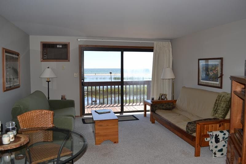 Very well maintained Upper Unit with an extra 1/2 bath in the bedroom. Open floor plan includes kitchen, dining area and living room. Sliding glass doors give you an excellent view overlooking Lake Huron. Common are decks and walkways. Well maintained complex. Association Dues $100.00 mo.