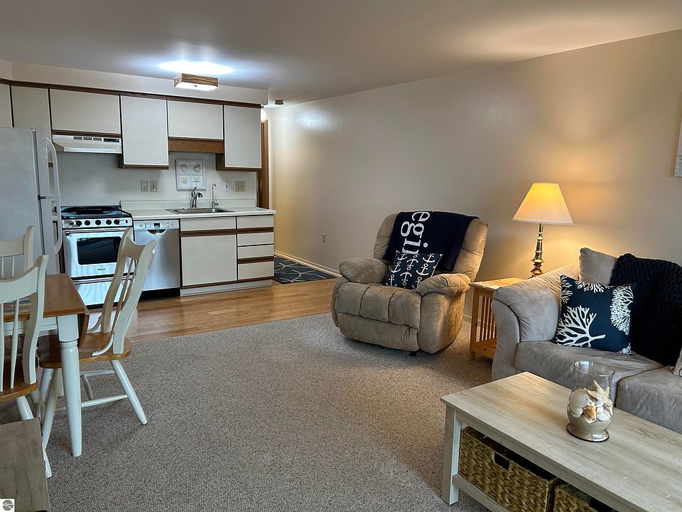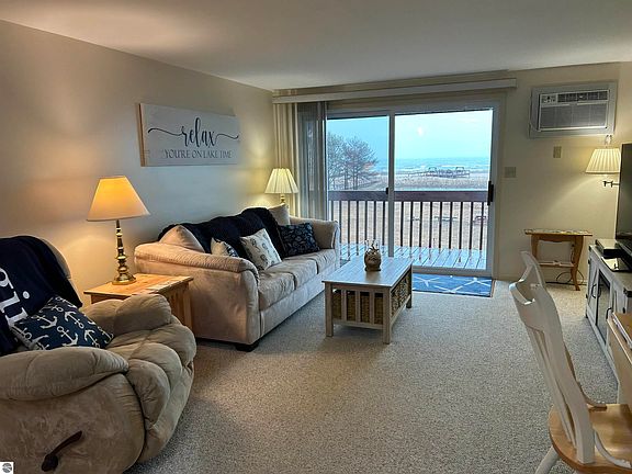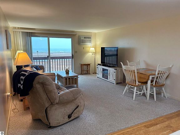 Imagine being able to secure a year round lakefront condominium with 800’ of sugar sand beach frontage shared with your fellow condo owners on one of the Great Lakes where you can beach walk to your hearts content.  Or you can enjoy the spectacular views of Lake Huron from your upper level deck while enjoying a warm summer breeze.  Inside you will find a well maintained unit with an open floor plan for the kitchen, dining and living area.  This unit is turnkey with all furniture including a new electric fireplace remain.  The unit comes with a one car garage with a newer garage door opener.  It is in a well maintained complex with beautifully landscaped grounds.  There is an on-site common laundry.  Also, the AuSable River is nearby as well as thousands of acres of federal and state forest with all the outdoor opportunities that provides.