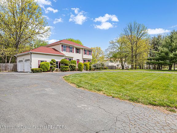Rare find - fabulously refreshed Center Hall Colonial with a circular driveway! First floor features: Eat-in kitchen with granite countertops and stainless steel appliances. New tile. Oak hardwood. Wood burning fireplace with floor-to-ceiling stone surround. Large laundry room off kitchen with optional sink hookup or can be used as a second pantry. New washer. New dryer. Upstairs features: new carpet, 4 bedrooms with plenty of closet space including a large walk-in closet in the primary suite. Flat backyard with a large deck, multiple garden beds, and fully fenced. Full basement. Estimated 5-year old roof. Ideal commuter location - close to NYC bus stop and 3 miles to Matawan train station. Less than 2 miles from Old Bridge Golf Club expected to open in Summer 2023!
