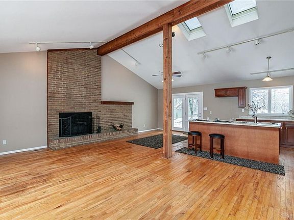 Awesome family home with 4 bedroom and 3 full baths renovated in 2018-19. From the moment you walk in you'll fall in love with the large 33x27 feet open great room, kitchen, and dining area with vaulted ceilings and wood burning fireplace. This quad level home also features a family room and lower level rec room, First floor inlaw bedroom with full bath. Second floor owners suite features vaulted ceiling, full bath with separated 2 sink vanity and large closet. 2 car side entry garage with plenty of room to add additional garage space attached to home. Over half acre wooded rear yard is fenced and secluded. Beavercreek Saville Park and Cardinal Hill swim club are across the street and the Cardinal Hill Preserve backs up to the rear yard. Fireplace is not warranted. Hurry don't miss this fabulous property.