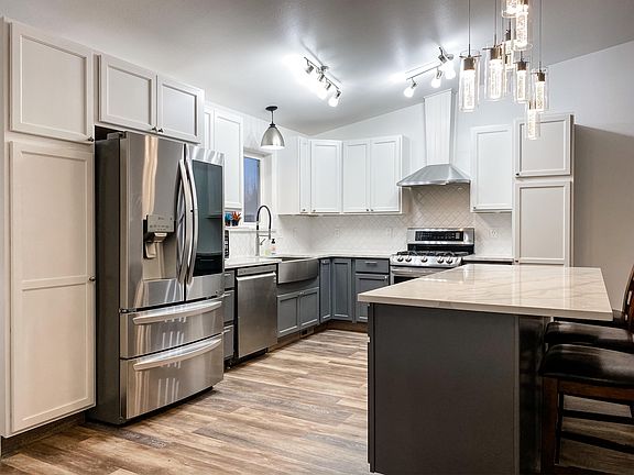 Totally remodeled like new home in awesome country location! 4 beds (2 w/ private baths) + 2 more full baths. Kitchen features huge island, quartz countertops, new SS LG appliances & double oven! Luxury vinyl flooring on top two levels, new carpet in huge finished basement. 24x28 heated shop + two sheds and large front deck. Open yard backs up to pasture, beautiful close-up mountain views!