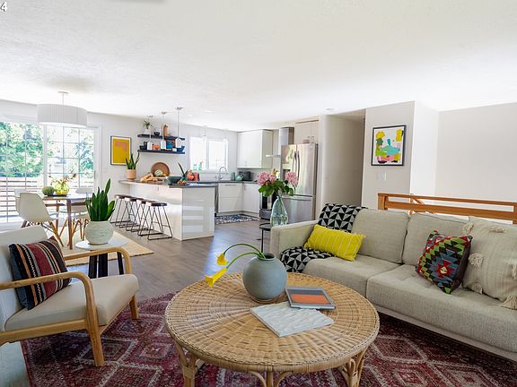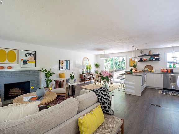 Renovated Milwaukie stunner with views! The open concept main floor is a welcoming retreat and features a remodeled kitchen with quartz counters and upgraded appliances that flows into the living and dining spaces. Host dinner parties while you cook, then take in sunset views from the oversized deck with your guests: the perfect summertime activity! The primary bedroom with ensuite bath also has access to this incredible feature. Two more bedrooms and a full bathroom round out the main floor, and you'll find another bedroom and full bath in the daylight basement. Downstairs also features a large family room with a second fireplace, or utilize this space as a fifth bedroom. The extra deep garage offers plenty of room both for parking and a shop, with direct access to the fully fenced backyard with lovely landscaping and firepit. Extensive updating throughout, including a newer roof and sewer line, a radon mitigation system, newer heat pump, and more. Enjoy living on a quiet cul-de-sac with easy access to shops, with the new Concord Library, Community Center, and park project being constructed just .5 miles away and the upcoming Trader Joe's just .7 miles away.
