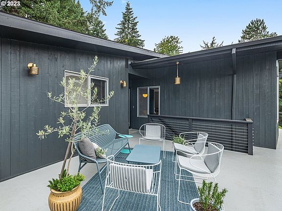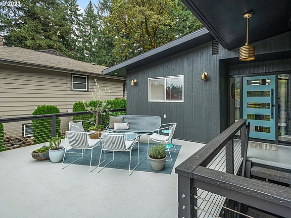 Home for the Holiday's! Move in ready....Enjoy Lake views from this one-of-a kind Lake Oswego home in the highly sought after and walkable West Bay/Bryant neighborhood. Mid-Century Modern touches combined with modern convenience including vaulted ceilings, natural oak floors, large picture windows, two brick wood-burning fireplaces and locally made lighting fixtures (from Schoolhouse Electric, Cedar and Moss and Rejuvenation). The large primary bedroom includes a small but convenient en-suite bathroom and walk-in closet space. Enjoy views of the water and sunsets from your expansive wrap-around deck, or cool off under string lights in a large old-growth wooded backyard. Plenty of space to dine or relax on a covered back porch that features a porch swing for your morning coffee or reading a book. Flexible and large lower level could be used as separate living quarters, a studio or workout space given its second kitchen, bedroom (or office), large bath, and living space. Close distance to restaurants, parks, shopping like Zupan's and schools. Come see the homes charm and potential!