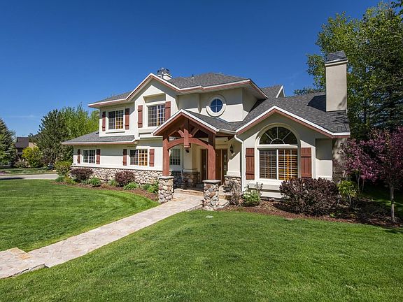 This one owner Carrera model home has been meticulously cared for and dramatically improved since purchased in 1995. CURB APPEAL: New roof, new trex deck, recent exterior paint, custom timber porch and flagstone walkway, professionally landscaped with mountain views. HOME EFFICIENCY: energy efficient furnaces, central air conditioning, humidifier and water softener, 2 fireplaces with direct vent gas with blowers, ceiling fans and Pella sliding glass doors. LUXURY LIFESTYLE: kitchen and bath renovations, Knotty Alder woodwork, slate entry, & hallway floors, Brazilian walnut in master and office interior paint and built-ins. Arctic Spa hot tub. all records and costs available