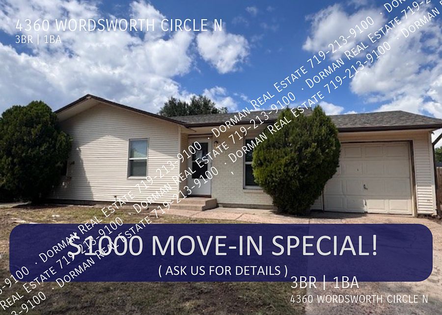 The owner of this property is offering a special incentive of $1000 off the first month of rent! Please contact us if you have questions. Welcome to this charming 3-bedroom, 1-bathroom home in Colorado Springs, CO. Recently updated with new interior paint, carpet, and luxury vinyl plank flooring, this house offers a fresh and modern feel. The fenced yard provides privacy and a safe space for outdoor activities. Conveniently located near an elementary school, Ft. Carson, and shopping centers, this home is perfect for those looking for a central location. The stainless steel appliances in the kitchen add a touch of elegance to the space. Don't miss out on the opportunity to make this house your new home! Please check out our application handbook by copying and pasting the link below into your web browser Please read carefully. PHOTOGRAPHY/VIDEOGRAPHY DISCLOSURE: We do not take new marketing pictures whenever a rental is turned over between tenants. Therefore, the photos we provide on our listings are meant to help potential residents see the general layout of a property they do not represent the current/actual condition. If you would like to better understand the condition of a listing, please schedule a personal viewing. COLORADO HB23-1099 DISCLOSURE: PROSPECTIVE TENANTS HAVE THE RIGHT TO PROVIDE TO DORMAN A PORTABLE TENANT SCREENING REPORT, AS DEFINED IN SECTION 38-12-902 (2.5), COLORADO REVISED STATUTES; AND IF THE PROSPECTIVE TENANT PROVIDES DORMAN WITH A PORTABLE TENANT SCREENING REPORT, DORMAN IS PROHIBITED FROM: 1) CHARGING THE PROSPECTIVE TENANT A RENTAL APPLICATION FEE OR 2) CHARGING THE PROSPECTIVE TENANT A FEE FOR THE LANDLORD TO ACCESS OR USE THE PORTABLE TENANT SCREENING REPORT. While Dorman does accept compliant portable screening reports as defined by HB23-1099, which would result in no application fee being required (or possibly an application fee refund), we do still require that all tenants complete our application (click APPLY next to any property on our list of properties below). Additionally, you will be deemed qualified (or not) based on the screening information/data provided on our independently pulled report, not based on information/data on your portable report. Please note that bona fide and compliant portable reports MUST come directly from the consumer reporting agency. 2 Pets Near Elementary School Near Ft. Carson Near Shopping New Carpet New Interior Paint New Lvp Flooring Stainless Appliances