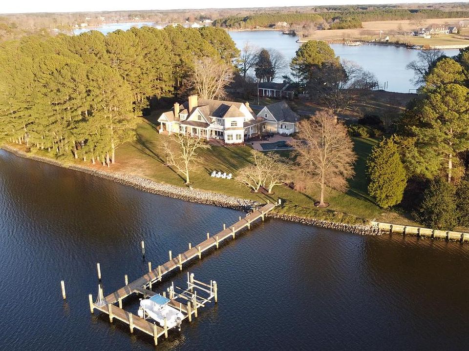 Spectacular Custom Built open concept Coastal style home located off the Oxford Corridor on Island Creek. 2 Master Bedrooms with one located on first floor. Total of 4 bedrooms, 4 full baths and 2 -1/2baths. Expansive views throughout this gorgeous home. Soaring foyer with sweeping staircase. Living room is two story with a grand full masonry fireplace. Gourmet kitchen has it all ..sub zero refrigerator plus extra frig beverage drawers, lots of fabulous upgrades, with custom cherry cabinets, 2 convection oven, large walk in pantry, a mud room with oversized cabinet front freezer, convenient and well sized laundry off kitchen and mudroom, BIG waterside breakfast room, light filled waterside/pool side sunroom. Large Gunite pool with built in jacuzzi and gorgeous oversized brick surrounding patio. Tie up your sailboat on the dock that has 6 feet of depth to accommodate your yacht plus 2 boat lifts and room for many watercrafts. LOCATION!! SUNSET VIEWS!! DEEP WATER!! CHESAPEAKE BAY LIVING at its finest. Make sure you view the Interactive tour!
