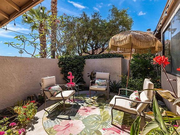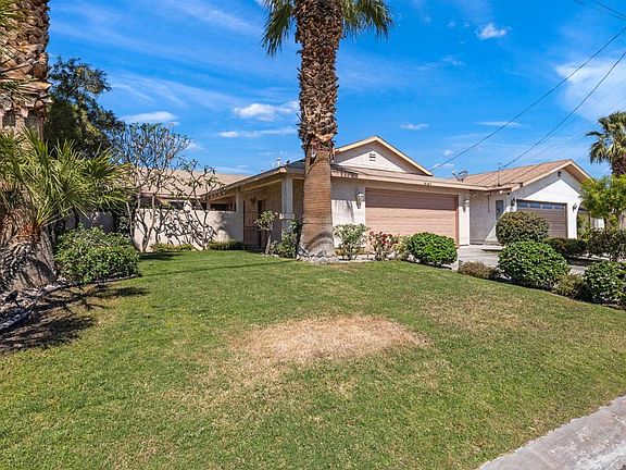 This wonderful 3 bedroom 2 bathroom 2 car garage home in Palm Desert country club is waiting for you. This home has a great floorplan and feels very light bright and open. The yard is mature and lush with a tropical paradise feeling there is room to add a small pool. There are 2 community pools and a spa with the small HOA of $33 a month. The community also has a public golf course, park ,rose garden, dog park, meeting hall, volleyball and basketball. It is close to the world famous Indian wells tennis garden and about 7 min from El Paseo our shopping dinning street. There is solar that needs to be paid for or get a loan outside of purchase price. Solar loan can possibly be assumable with a good credit score at a great interest rate.