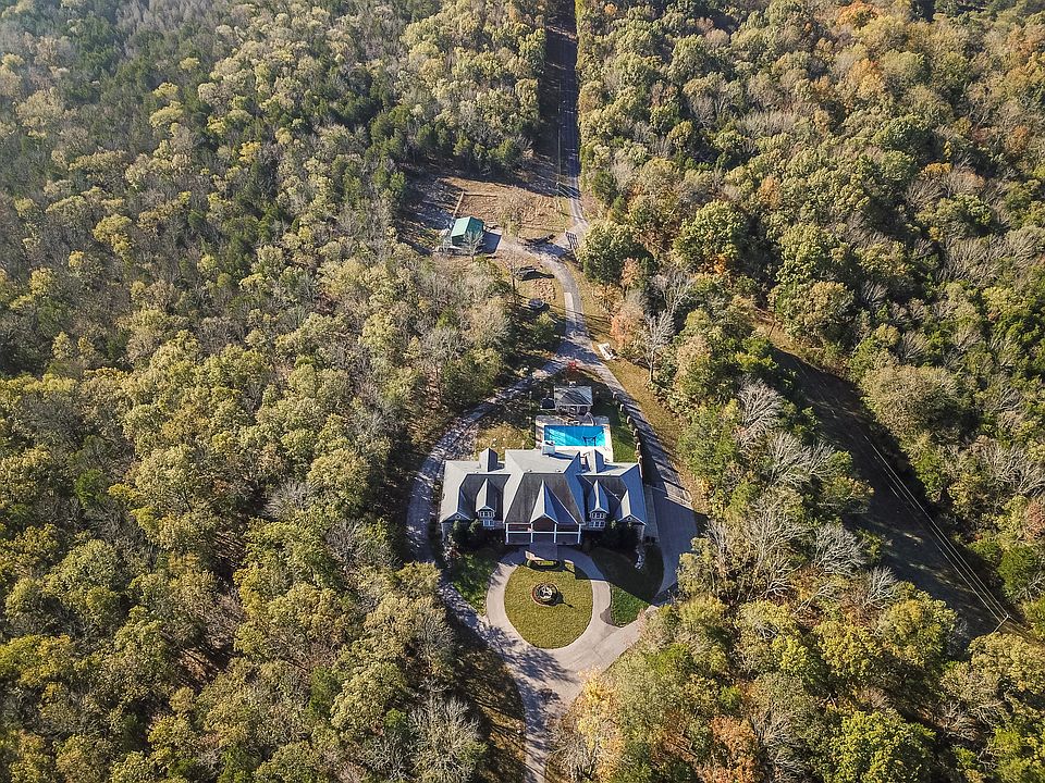 Private Estate on over 21 acres in a coveted location near I-840 and I-65. Home has a gated entrance, a great outdoor shop plus a huge attached garage, tons of storage and a barn. Extraordinary features include a salt water swimming pool, cabana with fireplace, double tiered balconies, spacious bedrooms, in-law suite with kitchenette & laundry, hobby rooms, finished basement, an elevator to all three floors, a diner and a theater. Under Forestry Management Plan.