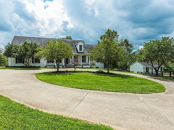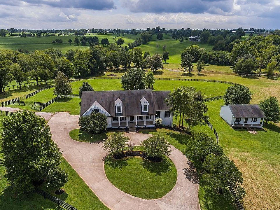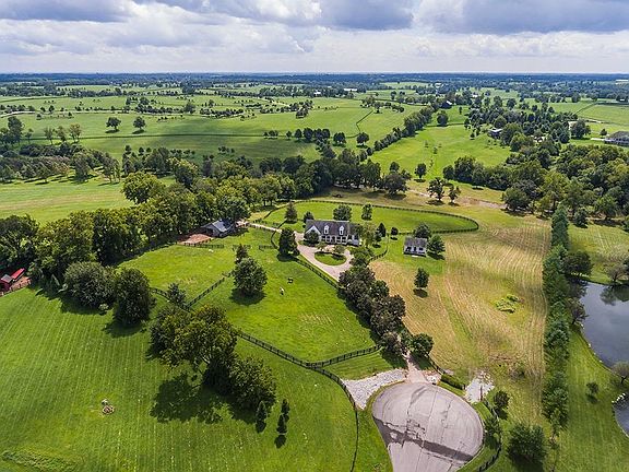 Unique opportunity to own a piece of the Bluegrass! This property features 10 acres with 4 plank fencing, 4 paddocks, rolling creek and a 36x24 barn with 2 stalls! Plus a tack room with a rear covered area for equipment storage with electric and water. The main house has just been updated. The first floor offers a first floor master suite, hardwood floors, 9' ceilings, eat in kitchen with white cabinets & granite counter tops. Large family room with fireplace. Oversized utility room. 2nd floor offers 4 large bedrooms with 2 Jack and Jill bathrooms. Lower level is partially finished with rec room and built-ins, storage area and a side walk out. The guest house is self-sufficient with over 750 square feet, living room, kitchen area, bedroom and bath. Amazing views from every area of the property. This is a gated area, must have appointment to see even the exterior. Very private. Tranquil living with close proximity to many conveniences including the interstate & shopping.