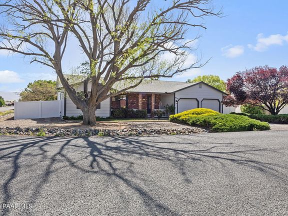 Fall in love with this beautiful 3 bed, 2 bath cottage on a spacious corner lot in Prescott Valley--NO HOA! This home blends charm and modern style with upgraded flooring, elegant quartz countertops, and a stunning 3-way fireplace as the focal point of the open living space. The kitchen and baths shine with quality finishes, while the cozy front and back porches offer perfect spots to relax and unwind. Enjoy privacy and room to roam with brand new fencing surrounding the oversized lot. Whether entertaining guests or enjoying peaceful evenings at home, this property delivers comfort, character, and convenience. A true gem you won't want to miss!