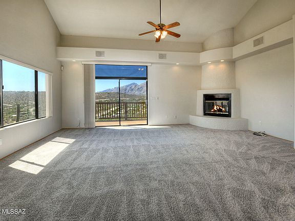 * VIRTUAL SHOWING: https://www.facebook.com/LeslieHerosRealtor/videos/815853849062932 * Come experience this foothills private neighborhood where you will enjoy desert beauty & stunning mountain views inside & out! Home features expansive great room, vaulted ceilings, updated fixtures, bar & classic bee hive fireplace. Step out the sliding glass doors to freshly painted/sealed wrap around deck & quietly relax while taking in the view. Spacious kitchen w/ excellent storage, spacious eat-in area & private patio for dining al fresco. Nice sized owner's suite w/ stunning views & patio access, dual vanities & walk-in closet. 2 spacious guest rooms & new carpet throughout. Whole house newly painted. Freshly painted & epoxied 2 car garage. Newly recoated roof. Opportunity to make this your dream home. Minutes from Sabino Canyon, schools, shopping & restaurants.