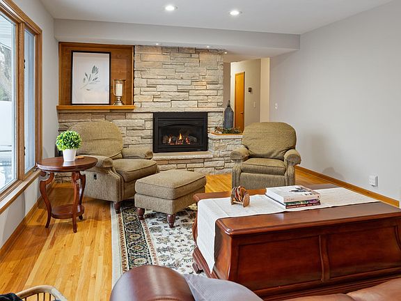 a thru street! Very well maintained solid 1955 build, hard wood floors throughout. Entire interior has been freshly painted. Furnace, water heater, and central air are all 2 years old. New Roof in 2021. New primary en suite bath, walk-out lower level with a 3 season porch, and beautiful