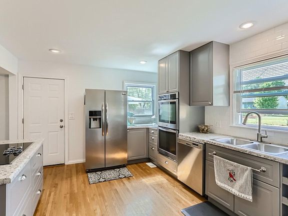 This beautiful home has been completely remodeled inside and out! Updates on the exterior of the home include new siding, windows, roof, and driveway. Inside you are greeted with wood flooring throughout the main level, an oversized family room, a half bath, and a newly remodeled kitchen. The kitchen features new cabinets, a double wall oven, a pantry with barn door, and a massive kitchen island with a cooktop that separates the kitchen and dining room. The garage is connected to the house through a breezeway that also connects to the back patio. The upper level has all 4 bedrooms and a remodeled full bathroom. The basement is newly renovated with new carpeting, recessed lighting, 2 living room spaces, and the laundry/ mechanical rooms. The backyard is very spacious and is fully fenced. This home is truly a must see and could be yours!