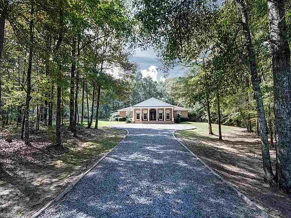 Looking for unique? Tired of seeing the same ol' same ol' homes? Ever dreamed of living in the Mediterranean? Well, how about a classic villa tucked privately away on a shady, wooded three-acre corner lot in Terry's Springwood Acres? Not what you're expecting! This versatile 3400-square foot home offers so many options. The long central marble-floored hallway runs from covered front porch to rear screened porch and provides an almost symmetrical floor plan offering a living room, formal dining, library/study (shelving remains), large den with fireplace, office/fourth bedroom "flex" room, kitchen, breakfast area, three (or four) bedrooms and five baths (including individual his and hers in the master suite!), plus laundry room and large walk-in pantry. The spacious, yet efficient kitchen is a chef's delight, with ample cabinets and solid-surface counter space, including an island and dining bar. Marble floors in the kitchen and breakfast rooms, also. Spacious front and rear driveways with parking for many. Bonus! The 520-square foot shop off rear drive is perfect for auto enthusiasts, wood workers or general tinkerers and putters--could be easily modified into the quintessential "man cave." An amazing lot for folks who love the outdoors, with woods, open lawn, a green house, arbor, screened porch, patio -- and the fountain remains! Always contact your REALTOR for accurate valuation information.