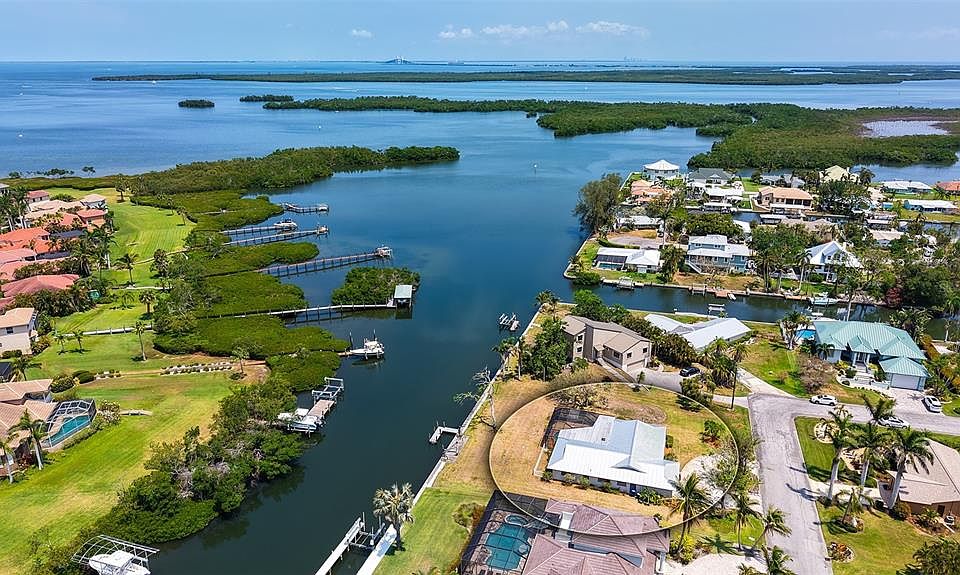 One or more photo(s) has been virtually staged. Snead Island Waterfront Oasis Awaits Your Finishing Touches – A Nature Lover’s Dream! Welcome to your slice of paradise on iconic Snead Island! This classic 4BR/2BA ranch home sits on nearly a half-acre waterfront lot with 130 feet of seawall and a private dock, perfect for the boating enthusiast. Enjoy peaceful mornings and stunning sunsets from your oversized, screened in lanai (new screens 2025) with covered seating and a sparkling pool overlooking panoramic water views where fish jump and birds soar. The home features a newer metal roof (2019), brand-new high-efficiency HVAC (2024), hurricane shutters (automatic & manual), circular driveway, and an oversized 2-car garage. Inside, the flexible layout includes a 4th bedroom that can double as a den or office. Nature lovers will appreciate being just a short bike ride to Emerson Point Preserve, a 365-acre nature preserve full of native plants and wildlife with miles of scenic hiking and biking trails, many kayak launches, the J.J. "Toby" Holland educational center, and breathtaking views from several observation towers. After a day of adventure, cool off at the Bradenton Yacht Club, offering fine dining and vibrant social events. Snead Island is perfectly positioned at the mouth of the Manatee River and Tampa Bay with multiple marinas, dry storage options, and public boat launches nearby giving you quick access by boat to the beaches, Egmont Key, Ft. Desoto Park, endless fishing, waterfront dining and aquatic fun. Don't miss your chance to own a slice of paradise on sought-after Snead Island with an ideal canvas for your waterfront lifestyle vision!