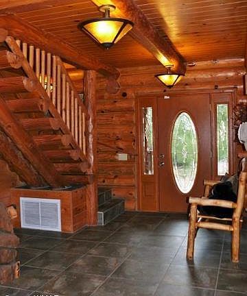 Beautiful Log home in the heart of Torreon. Grand entry way with large log beams and staircase.