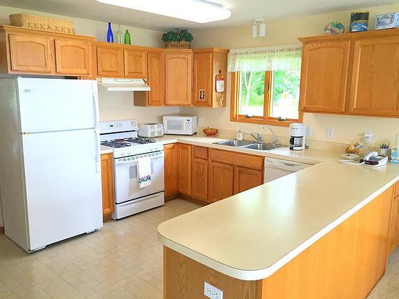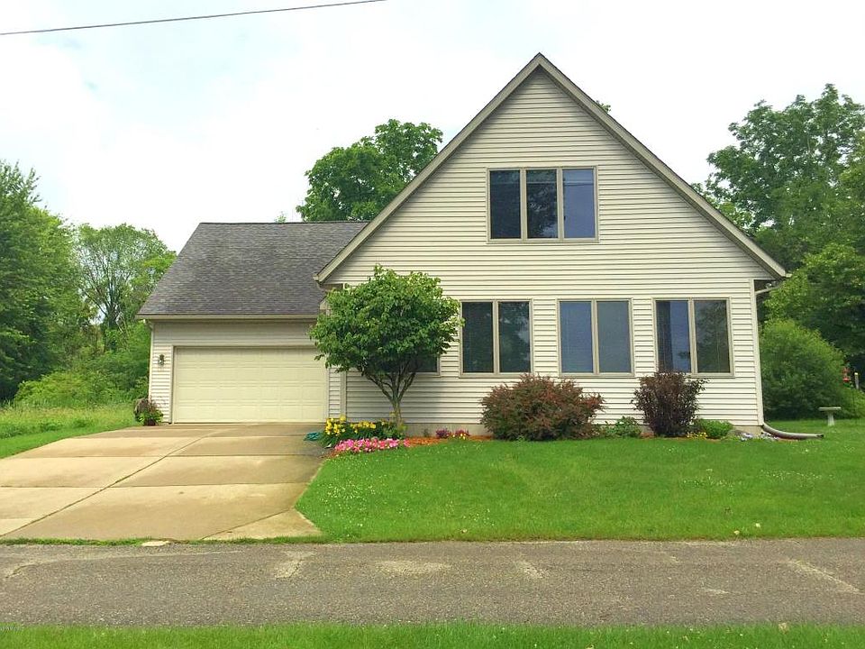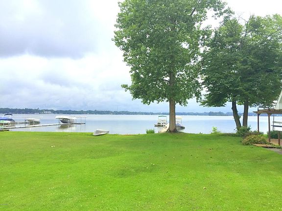 One of the best locations on Gun Lake! Sandy bottom, deep side of the lake & private cul-de-sac road! Built in 2000, this custom year round home boasts 38 feet of private frontage and is located on 2 lots. This beautiful home has everything! Enjoy spectacular views of the lake! The spacious kitchen opens to the dining room and living room which features a gas log fireplace. The main floor master bedroom with a full bathroom steps out to a private deck. This home has a main floor laundry room . The upper level holds 2 additional bedrooms, one with a dormer/office space above the garage, as well as a full bathroom. Finally, the home has an extra-large four stall heated and insulated garage with a rear access garage door. Wonderful for storing all of your toys! (natural gas/public sewer)