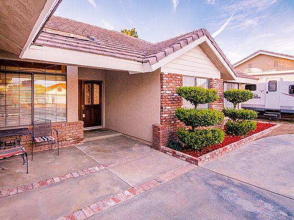 Gorgeous Single story with incredible curb appeal, Ron Arrache built home in a very desirable neighborhood! This home has 3 over-sized bedrooms, a beautiful brick double-sided fireplace into both the living room and family room. The Up Dated Master Suite features attached bathroom with double sinks and separate tub and shower and access to the backyard. Across from the family room is the large Up Dated Kitchen with a newly installed SS Double Electric Oven, 5 burner gas insert stove top, Dishwasher, and with plenty of cabinet space. The backyard has a covered patio and a spa pool (12' x 8' and 3 feet deep). Has recently installed New Heater, Pump and Filter. Large RV parking along with 2 car garage. Absolutely stunning home- close to schools, shopping, restaurants, walking distance to AV College, Rawley Duntley Park, Prime Desert Woodland Preserve, and easy freeway access, the list goes on! Come see this beautifully up dated home before it's gone!