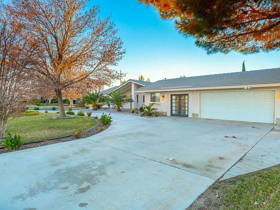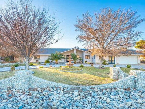 This rare gem on premium almost 1 acre lot is sure to impress w/ ample mature trees, custom cobblestone hardscaping, stunning stone circular driveway, luscious green grass & center fountain. Step inside & revel in this open floor plan, w/ large stone center fireplace, as natural light radiates throughout broadcasting vaulted ceilings, beautiful bright tile flooring & brilliant white baseboards. Venture into the upgraded chef's kitchen equipped w/ large center island w/ a built-in beverage cooler, maple cabinetry, granite countertops w/ tile backsplash & stainless steel appliances. Enjoy a wine nook w/ storage & separate wine cooler. Off the kitchen find a bathroom, laundry room w/ hookups & large bedroom w/ french doors leading to the front yard. Find 3 large bedrooms including the master suite. Finally, retreat to the backyard to relax under the covered patio or take a dip in the pool/spa & beyond the block wall find a copious amount of extra land w/ endless possibilities.