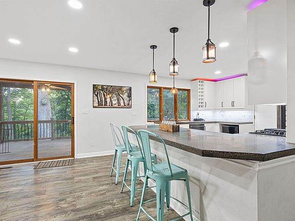 Looking for privacy? Take a look at this home on 3.10 acres with a creek and county taxes. Close to 2500 sq feet of updated living space is sure to please the fussiest buyer. Living room with updated flooring. Completely remodeled kitchen with breakfast bar, new cabinets, countertops, flooring and appliances. Separate table space with sliders to deck area. Master bedroom with a completely remodeled private bath. Lower level family room with new stone front fireplace and carpet. Lower level bath has been remodeled as well. Newer water softener and central air. Sellers added gutter helmets. Agent related. * some photos are virtually staged *