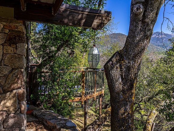 Outside, the beautifully landscaped yard beckons with serene paths leading to a sparkling swimming pool and spa, perfect for relaxation and entertaining. The fire pit area offers a cozy spot to gather and enjoy the natural beauty, while the seasonal creek and massive boulders add to the property's charm.