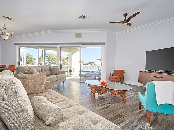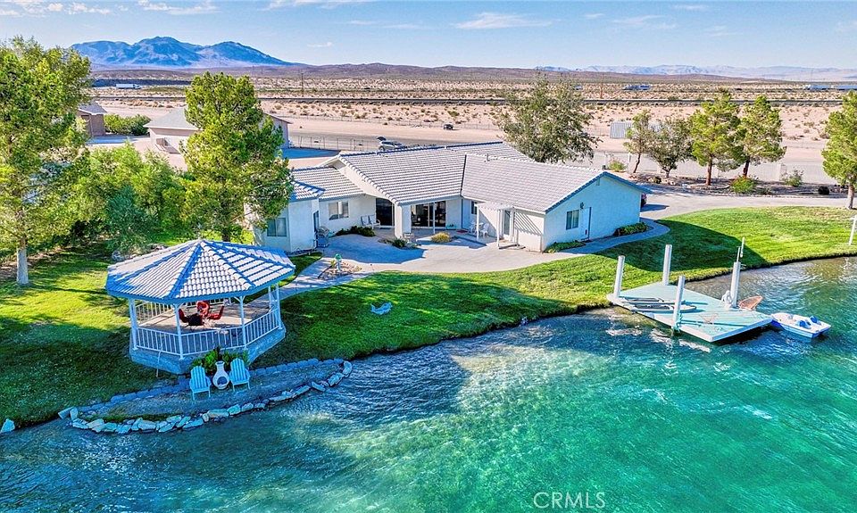 Updated Price!!! These pictures show how amazing the desert can be. Imagine your self in this beautiful three bedroom two bath home on the Lake in the Crystal Lakes community of Newberry Springs . This beauty is fully landscaped with grass, rock-scaping, and mature trees all around. The front is secure with a wrought iron fence with two electronic gates. The interior has been well maintained. The living room and kitchen feature a beautiful view of the lake and patio area. The kitchen is complete with tile counter tops and custom cabinets. Just off the kitchen sits the over-sized laundry room with a wash sink and storage. There is a bonus room off the kitchen with its on door to the back patio and lake access and full bathroom. The master bedroom has a large walk in closet and great sized bathroom with dual sinks and a stand up shower. The master bedroom also features an office area surrounded by windows to enjoy views of the lake and gazebo in the back yard. Come enjoy lake house living!