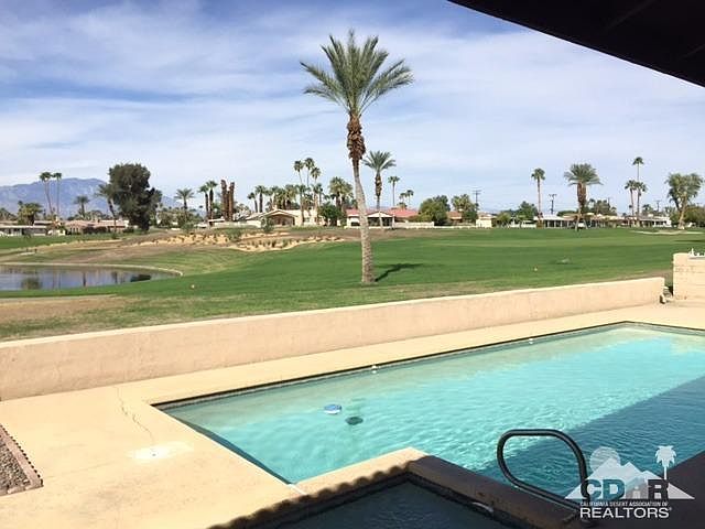 Wow! Check out this view....Mountains, Golf Course, Lake and your private pool, it doesn't get much better. 2 bed + den/office, 2 bathrooms. Great open floor plan, main living area and master bedroom have the view. Owner says new tile will be installed in main living area and bathrooms. There are granite counter tops in the kitchen and bathrooms. Double garage with direct access to the house.