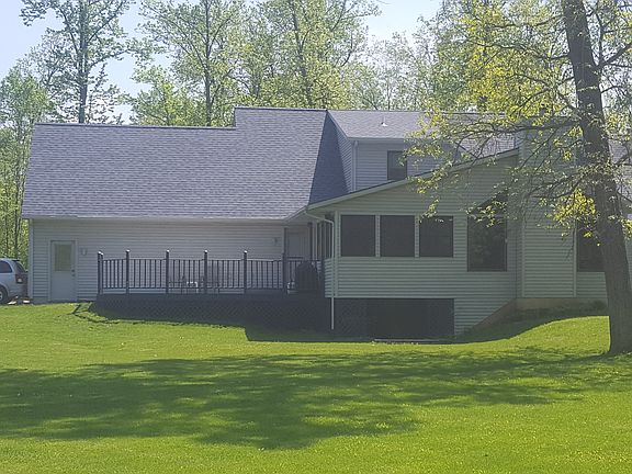 1997 built 4800 total square foot 1 owner Cape Cod home on 8.5 wooded acres of complete privacy with 1/2 acre pond. Main floor includes a beautiful vaulted living room with wood burning stone fireplace and separate sunroom both with outstanding views of pond and wooded lot. MBR and office/bedroom are also on main floor. 4 total bedrooms with 2 more possible bedrooms. 3 full bath with 2 half bath. Finished walkout basement has big screen entertainment room with gas burning fireplace, full bathroom and a complete separate catering/entertaining area with 3 bowl stainless sink, 2 refrigerators and 2 stoves with plenty of cabinets and countertop. Basement would make a perfect ‘mother-in-law’ living area. 2 car attached garage and 2.5 car detached garage. Recently upgraded Propane GFA furnace and heat pump. Blacktop driveway. New roof and flooring. Call for more info or appt.