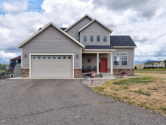 This stunning home offers breathtaking views and is adorned with custom cabinets. The entryway and kitchen feature beautiful tile. The living area is highlighted by a cozy gas slate fireplace, perfect for relaxing evenings. The master bedroom includes a walk-in shower and jet tub. Equipped with central vacuum. Rinnai hot water heater and water softener. Additionally, the home includes an unfinished daylight basement with a fully finished bathroom and a finished attached 2-car garage. 1.23 acres has enough room for all your toys. Includes a cistern. Please call Roberta Hurni at 406-202-2129, or your real estate professional.