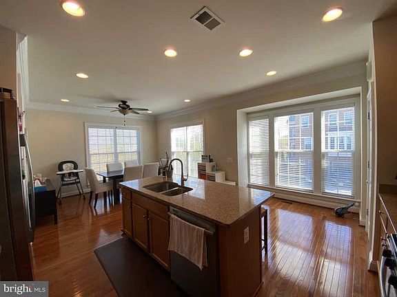 Beautiful and bright 4BR, 3.5BA end-unit townhome! One of the largest townhomes in the neighborhood with over 3,300 sq ft. and over-sized 2-car garage with additional storage space. Features include 9 ft. ceilings, gleaming hardwood floors, open living and dining areas with main level office, and spacious kitchen with SS appliances, granite counters, maple cabinets, and large island. Huge master bedroom with sitting area, generous walk-in closet, and master bath with soaking tub, double vanity, and water closet. Washer and dryer on upper level. Lower level features a full bedroom with closet and full bath in addition to the expansive rec room. Amenities include clubhouse, pool, and playground, and lots of visitor parking. Shopping center, public soccer field and commuter lot are within walking distance. Property is available on June 1st. Pets on a case-by-case basis.