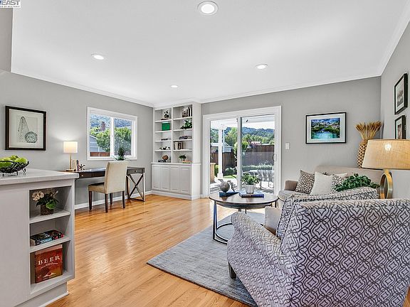 Beautiful Desirable Highland Oaks Home 4 Bedrooms 1 story downstairs. Updated and Major Remodel in 2018 including interior painting, Refinished hardwood flooring, Crown Moulding, bathroom vanities, refinished kitchen cabinets, most kitchen appliances, removed old upper insulation & replaced with R20, replaced partial siding and painted exterior, glass sliding door and carpets. Updated kitchen has corian counters and freshly painted white cabinets. Also has separate dining room, Recess lighting, dual pane windows, built in cabinets in several rooms and so much more!! Home was expanded in 1987 downstairs and 2nd floor with permits. Upstairs has a wonderful bonus room or could be another bedroom with closet, or office and has large attic storage. Beautiful Professional Design landscaping with walkways, flowering brushes, Pergola, drainage, lighting, built in gas BBQ, newer fencing, view of hills & more. Home is part of of Highland Oak HOA with community pool and clubhouse. Excellent location close to top rated Pleasanton schools, Muirwood Park, easy access to 580, 680, BART, & Stoneridge Mall. THIS IS A MUST SEE!! Open House Sat and Sun May 27 & 28 1:00-4:00
