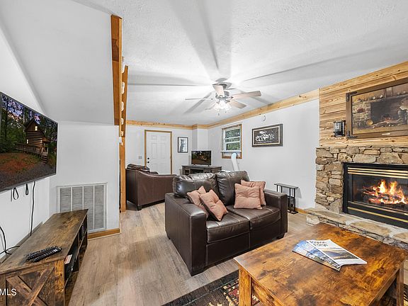 Peaceful cabin sitting on approx. 8 acres with secluded, and buildable lots in East Tennessee. Great Central Location to Sevierville, Pigeon Forge, and Gatlinburg! Able to subdivide with ridgeline views. New HVAC system, LVP flooring, pool table, hot tub, video games and furniture are some of the updates to this classic cabin in the woods. Half bath on the main floor for guests with a full bath in each bedroom upstairs. Roomy kitchen with washer and dryer along with gas fireplace to keep it super cozy! Investment property, second home or a perfect vacation getaway, this listing has a lot to offer. Life can get crazy, but this could be your happy place! Escape to your private cabin in the mountains to recover, recharge and reconnect with mother nature. Buyer would have potential to build additional cabins on the back 7 acres including the ridgeline. Gravel road is maintained together by property owners' association. Property is being sold 'As Is'. Contact us today to schedule your private showing!!